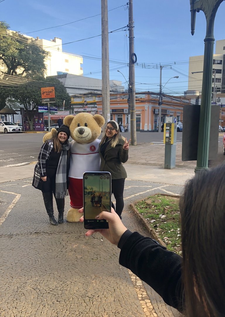 O mascote da Maple Bear já chegou em Passo Fundo cheio de curiosidade. O urso fez questão de conhecer os principais pontos turísticos e foi muito bem recebido pelos moradores.